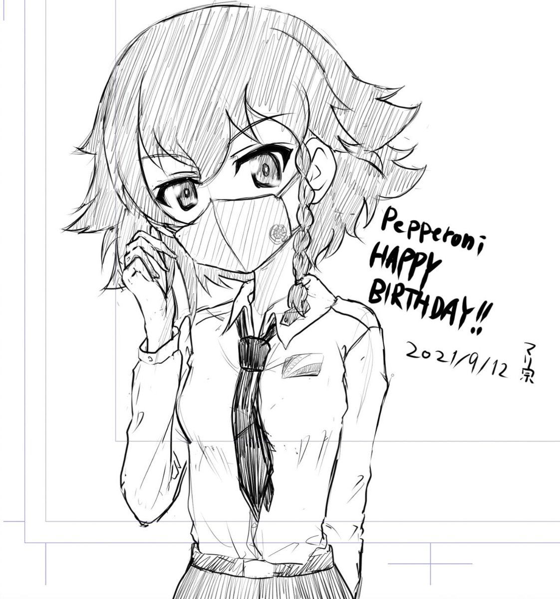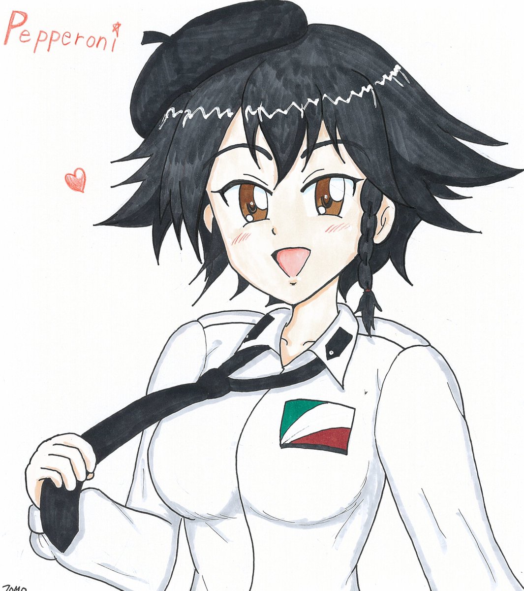 今日はペパロニの誕生日らしいので、ペパロニ描いてみました。 ペパロニさん、誕生日おめでとう❗️ #絵描きさんと繋がりたい #ペパロニ生誕祭2021 #アナログ絵 #イラスト #ペパロニ生誕祭 #万年筆イラスト #ガルパン #落書き