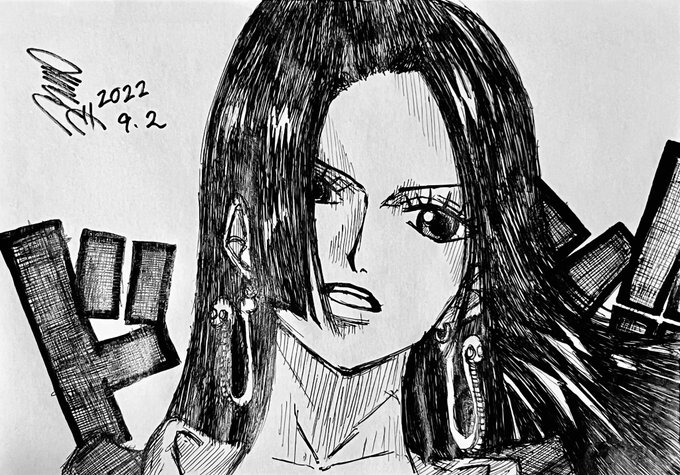 海賊女帝ボア・ハンコック様、おめでとうございます🐍強さに底が見えないからまだまだ活躍するんだろうなぁ。ルフィが海賊王になったら悟空みたいな軽いノリで「じゃ、ケッコンすっか!」で結ばれてしまえぃ💘 #ボア・ハンコック誕生祭2022 #ボア・ハンコック生誕祭2022 #ONEPIECE #ワンピース #落描き