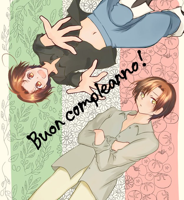 ギリ間に合った‼️おめでとう🎊大好きだよ‼️ これからも二人仲良くね✨ #伊誕2023 #ヘタリア #くるん兄弟生誕祭2023 #くるん兄弟生誕祭 #マカロニ兄弟生誕祭2023 #伊兄弟生誕祭2023
