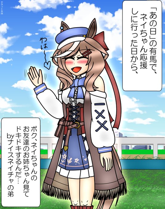 マチタンは初恋泥棒 ネイチャの幼い弟とか、マチタンは初恋奪う確率高いとか、両親紹介とか、とろけた声とか…いろいろ考えて描きました😇 アニメで手を振ってるシーンがあってあれが好きなもんで… #マチカネタンホイザ #ウマ娘 #マチカネタンホイザ生誕祭2022 #マチカネタンホイザ誕生祭2022