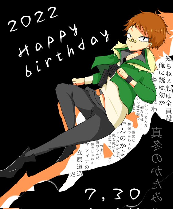 #マフィアの二丁拳銃使い生誕祭2022 #鼻絆創膏が最も似合う十人長生誕祭2022 #猟犬伝説の5人目生誕祭2022 誕生日おめでとうございます。本当に生まれてきてくれてありがとう。 久しぶりに文スト原作を呼んで、いつの間にかヒーローになってるじゃんって思いました。 とにかくおめでとう