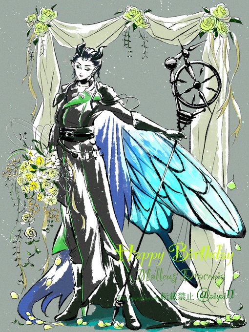 あなたの生まれた日にこそ光を! 想いを乗せてこの花束をあなたに… #twstファンアート #ツイステ好きさんと繋がりたい #茨の谷は祝日です #マレウス・ドラコニア生誕祭2023 #茨の谷の妖精王生誕祭2023 #運命の糸車が回った日