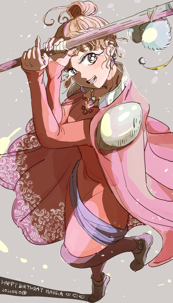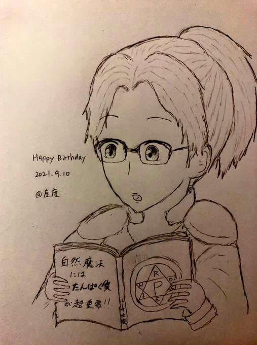 マーシアお誕生日おめでとう!!🎉 本を読む時、眼鏡をかけることがあっても良いなあという思いも込めて。 魔法が勿論強いけど、物理も悪くない。私のプレイだと杖で殴ることも珍しくなかった笑 #マーシア誕生祭2021