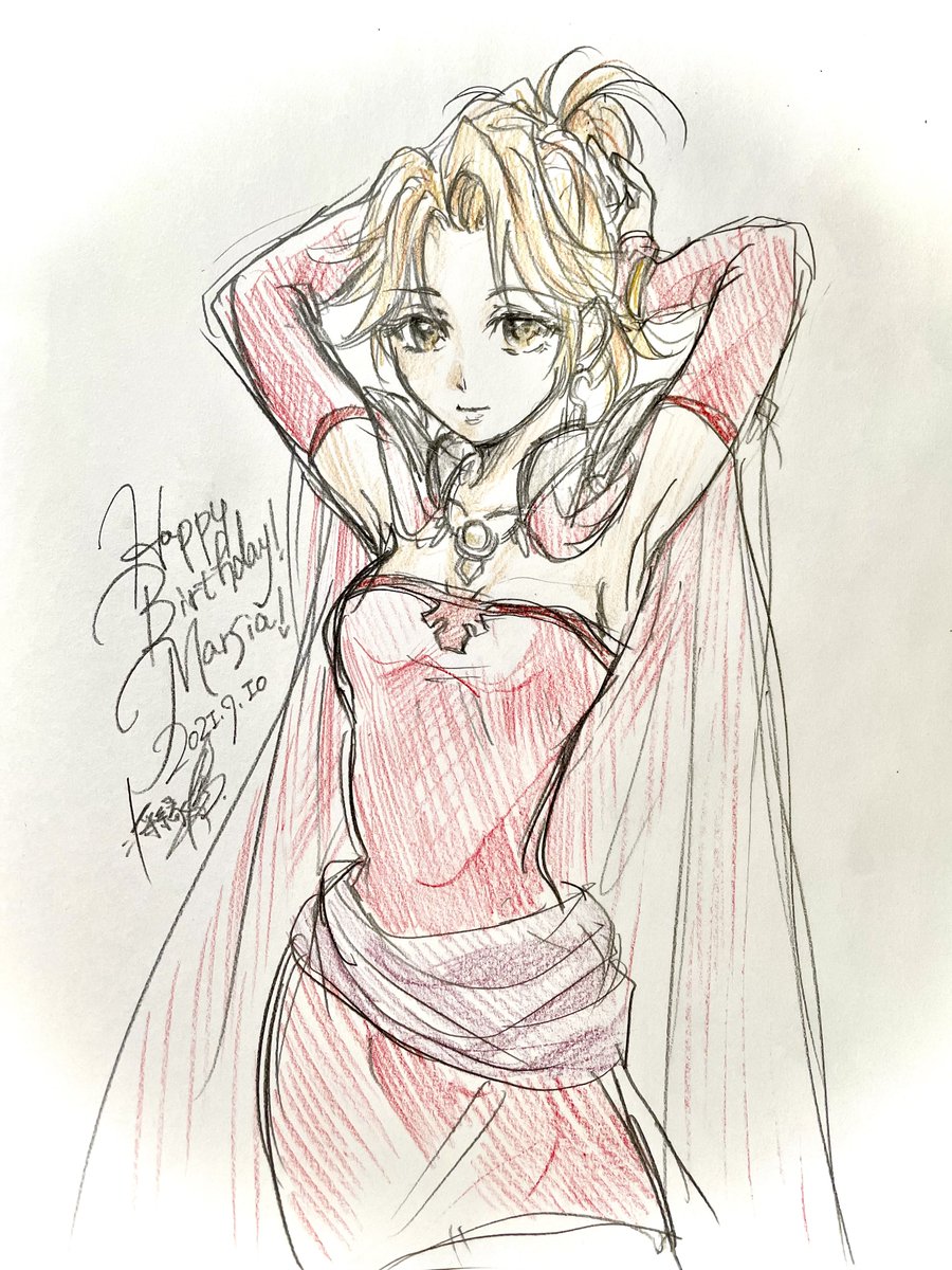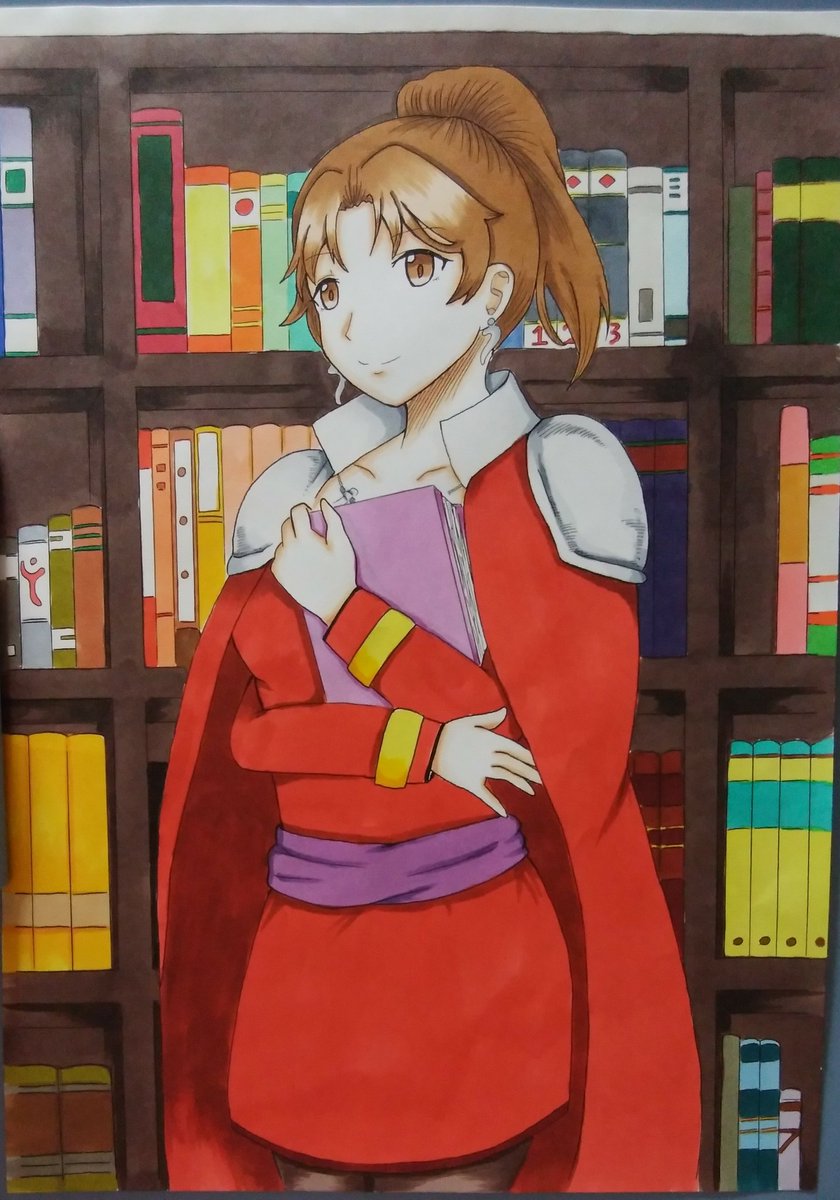 #マーシア誕生祭2021 #アークザラッド マーシア、おめでとう! ちょっとインクが事故ったとこあるけど、マーシア引き立っているかな……(´・ω・`) 場所はどっかの書店。 書店って色んな本があるから楽しい