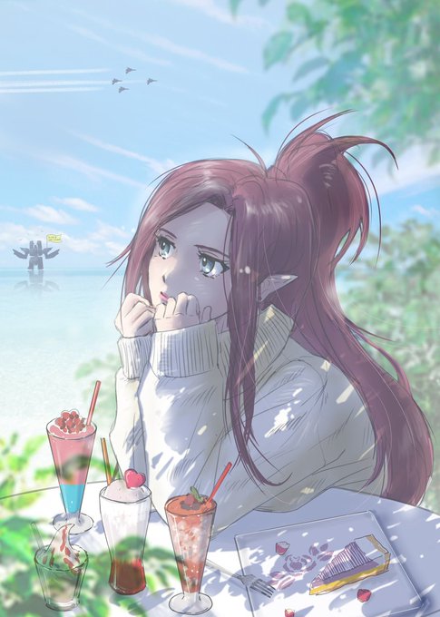 ラグナへ帰還後ひとときの休暇。海辺のカフェで一人、物思いに耽るミラージュ。新しい恋の悩みか.... 『正式にΔ小隊の隊長に任命されてしまった...💦前隊長はギガシオン、Δ5は育休、Δ6は...って実質チャック中尉と私2人...?ハァ..😮💨』 #ミラージュ誕生日 #ミラージュ・ファリーナ・ジーナス誕生祭2023