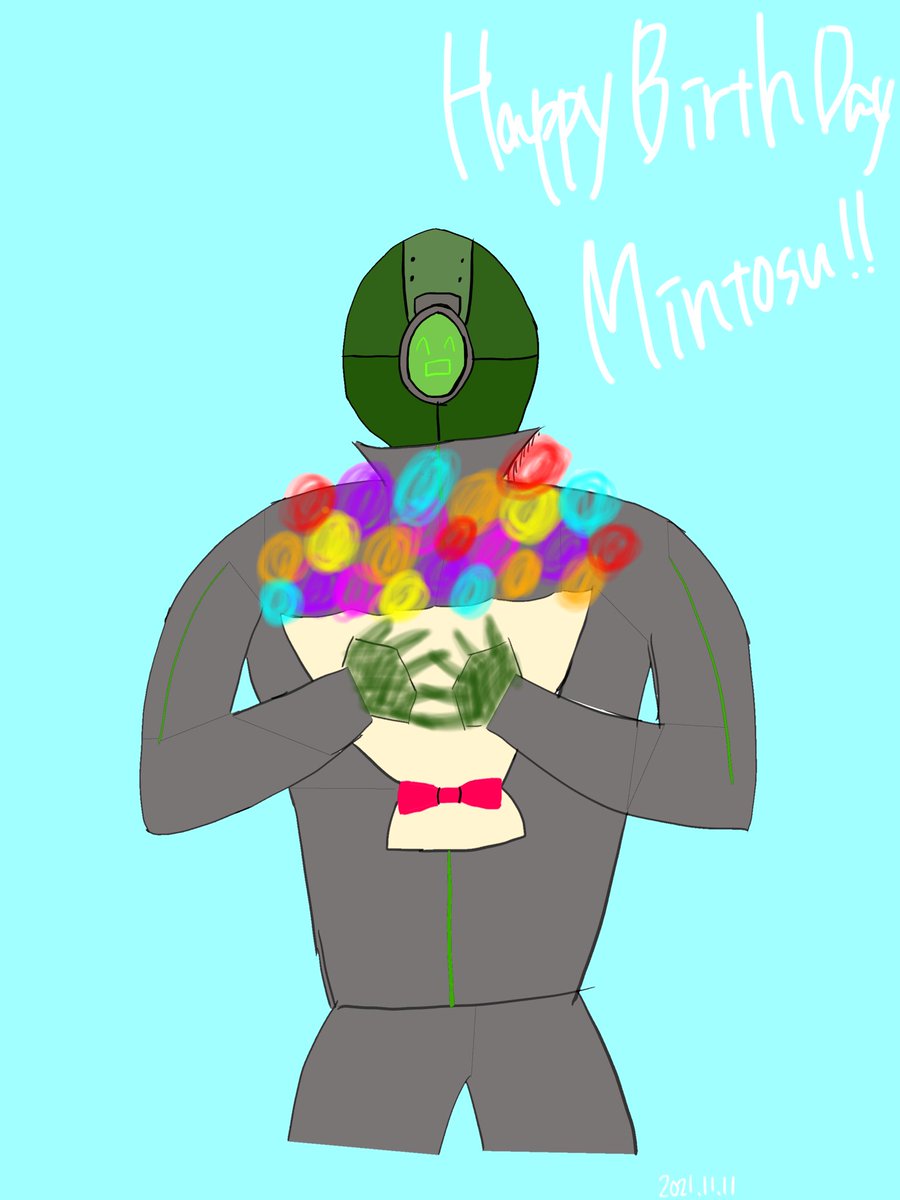 1日遅れましたけどもお誕生日おめでとうございます🎂🎉 トロールや兄貴や駄々っ子(?)や強がってるところなどなどぜーんぶがおもしろくて最高です〜🤖 より良い1年をお過ごしください🍀 低クオリティお許しください😭 #ミントスさん誕生祭2021 #ミントスって何 #ミントス教Art