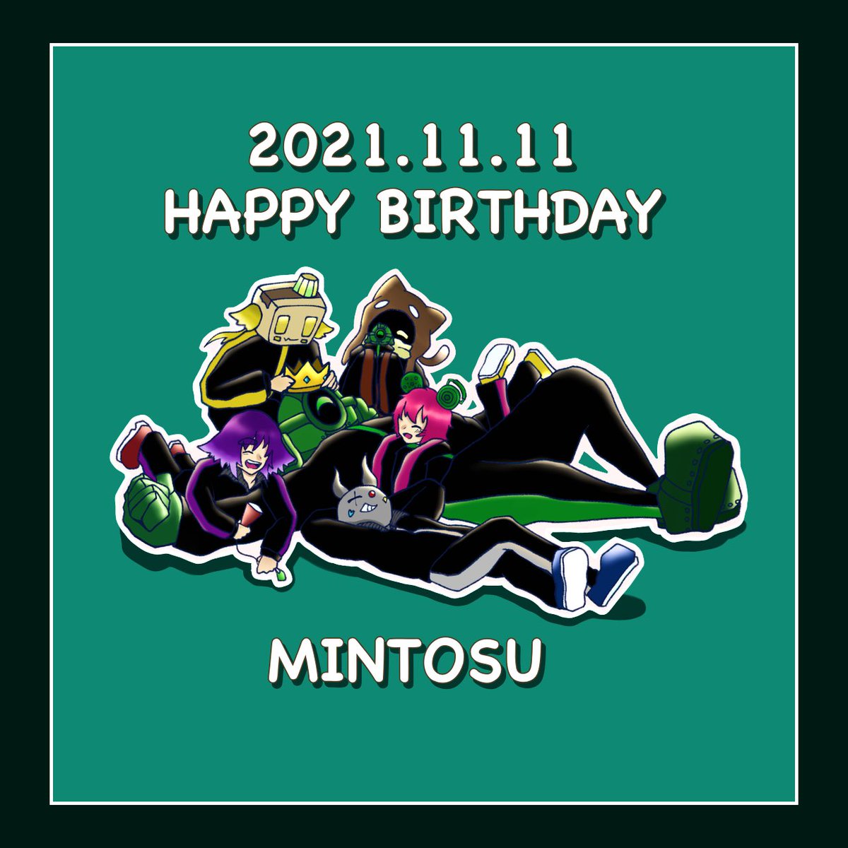 ミントスさん🤖お誕生日おめでとうございます‼️ 🐶📦🐱🎉🎂🤖🎂🎉🐻🐰 #bintrollFA #ミントス教Art #ミントス爆誕2021 #ミントス生誕祭2021 #ミントス誕生祭2021 #べびんとろぉる