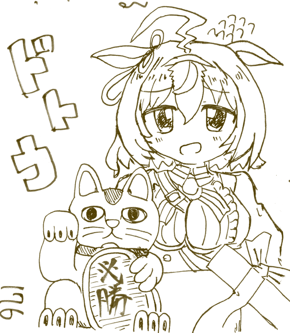描いたよ!おめでとうドトウちゃん! というわけで『ウマ娘 プリティーダービー』よりメイショウドトウ。 3/25は実馬もウマ娘も誕生日だったらしい。 招き猫をくれたのは一体マチカネ何キタルなんだ……? あとでぬる #メイショウドトウ #メイショウドトウ生誕祭2022 #ウマ娘 #1d1d twitter.com/Misp/status/…