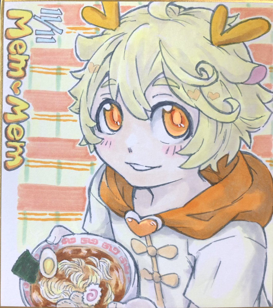 完全に遅れましたがメンメンおたおめ😭✨ ずっと描きたかった人間ver💕あばばばばばデザインホントかわいいいいいどこもかしこもかわいいいいいいいいい かわいいよぉおおおメンメンんんん! メン「なんかおねえさん達がらんちゃんと食べなっていっぱいくれたメン。食べる?」 #メンメン生誕祭2022