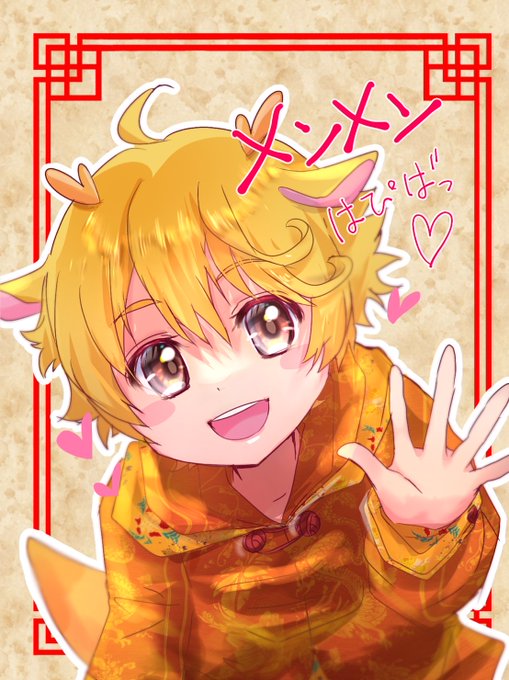 メンちゃん〜!!おめでとう〜!!✨🍜🍥🎉✨ メンちゃんも頑張り屋さんの男の子! らんちゃんとの仲良し風景はほんとに愛おしい…! 時間の都合で人間姿こちらに描けなかったけどそっちも好きだよっ…! #メンメン生誕祭2022