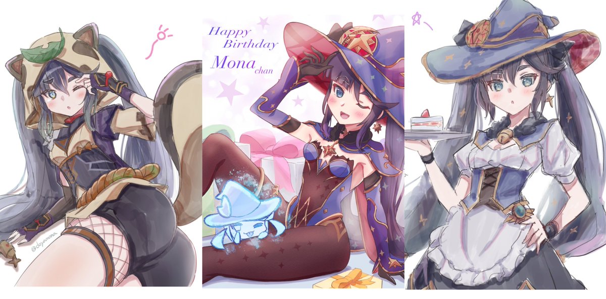 #原神 #モナ生誕祭2022 #Mona #GenshinImapct 去年描いてたモナちゃんもまとめました🎨真ん中が誕生日で左が早柚モナ右がスイパラモナちゃん🍰 来年も振り返れるようにまた1年全力でがんばりたいです🔮
