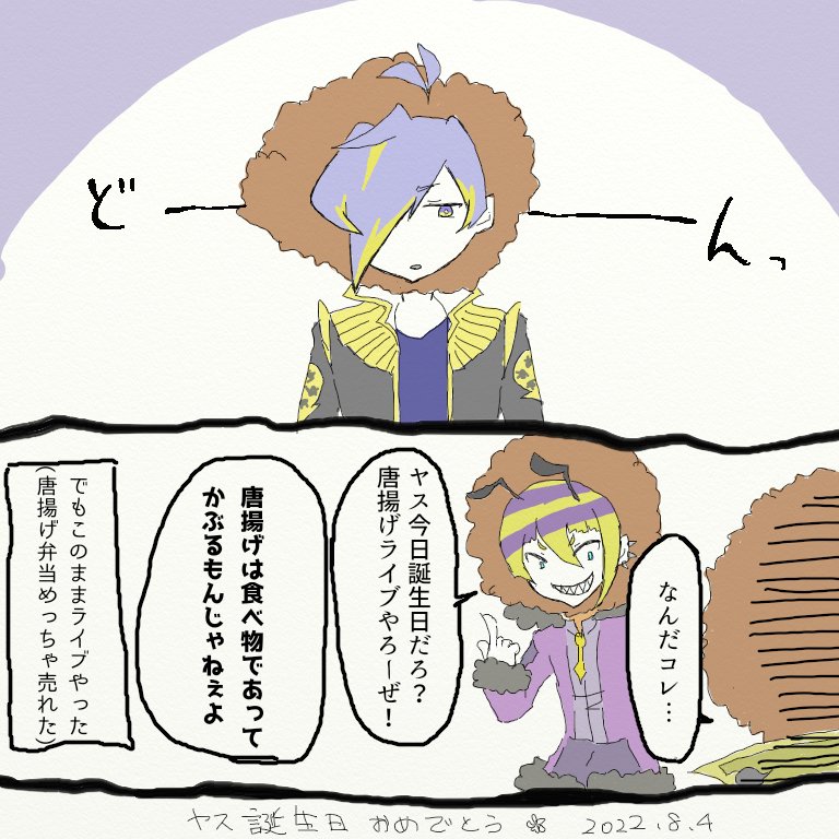 #ヤス生誕祭2022 #ヤス誕生祭2022 #SB69 🐝「誕生日だから蜂蜜かけてやるぜー!」 🔥「バランス良く野菜も食えよ」 🐶「唐揚げはわしがもらってやろう。感謝せぇ」 🍱「…うぜぇ…」 ヤスくん誕生日おめでとう!!!君の歌声が大好きだ!!!👊👊👊 どこ指でいつまでもわちゃわちゃしてくれ!!!!!