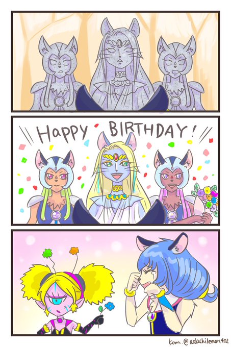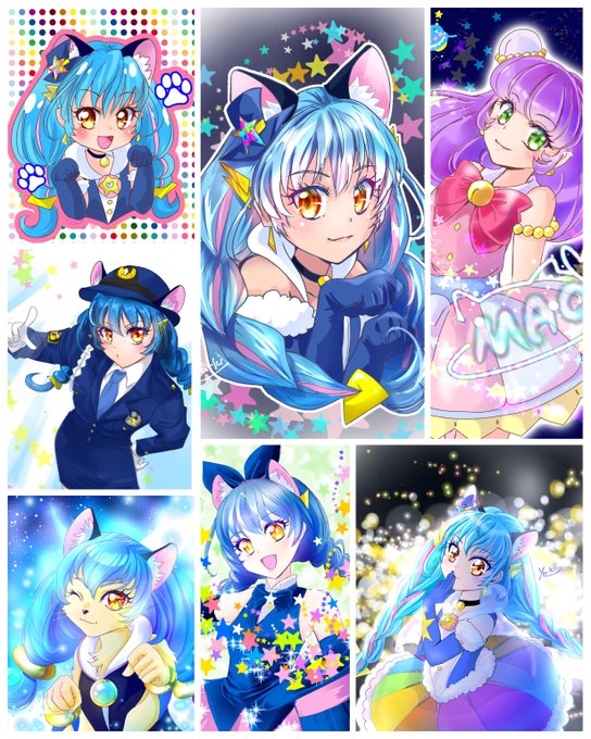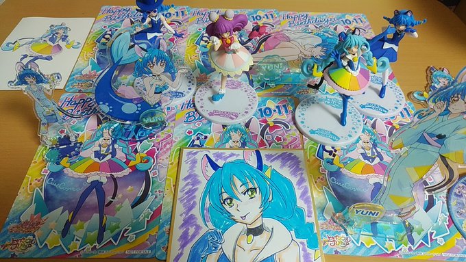 ユニ、キュアコスモ、ブルーキャットお誕生日おめでとーん!🦀ドン・オクトーかっこよすぎるな…あとマオはちょっと素材不足で…すまぬ…そして過去絵加工はクセになってしまうま🦓 #プリキュア #ユニ生誕祭2021 #キュアコスモ生誕祭2021