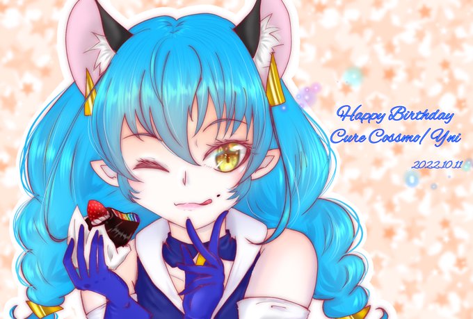 10月11日は、宇宙怪盗ブルーキャットさんのブルーキャットさんの誕生日にゃん🐱 過去に描いたユニの絵を漁ったら、声優と夜あそびの影響を受けたカオスな絵がいっぱいでしたにゃん😅 #ユニ生誕祭2022 #キュアコスモ生誕祭2022