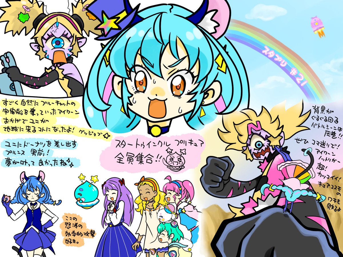 ユニ、お誕生日おめでとうー!🐾 過去感想絵でお祝いさせて頂きます!敵組織の彼も宇宙アイドルも普段の姿も真の姿も全部好き🥰アイワーンとの因縁の決着も大大大好きです!! #キュアコスモ生誕祭2022 #ユニ生誕祭2022