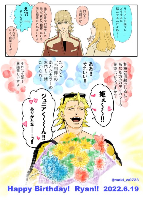 間に合わなかったけどせっかくなのでアップします💦みんなにお祝いされて照れちゃうライアンもいいよね☺️ライアンお誕生日おめでとうー!!サプライズケーキはブルロちゃんが運んでくるよ☺️ #ゴールデンライアン生誕祭2022 #ライアン・ゴールドスミス生誕祭2022