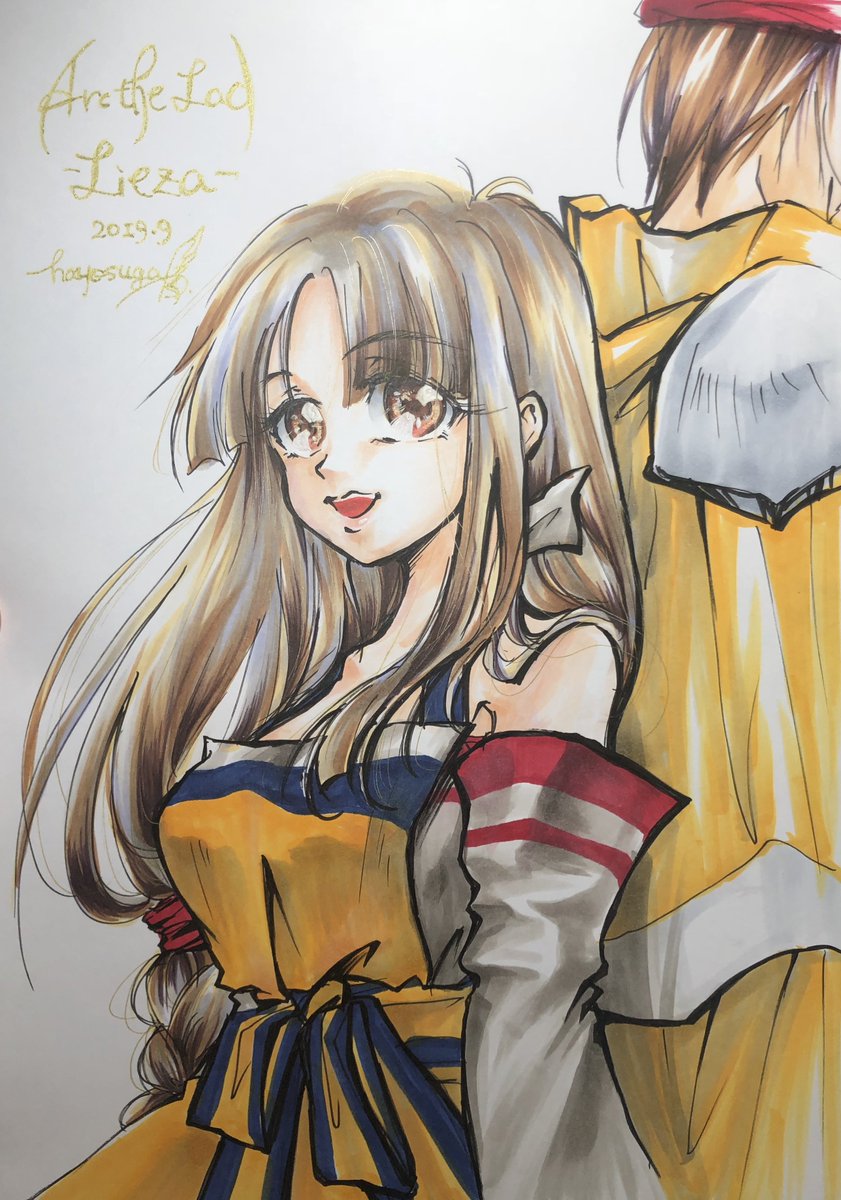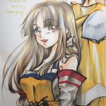 リーザのキャラデザほんと好きです。特に裾から下の足首出てるところ大好きです。金髪も茶髪も良きかな 彼女のふわっと柔らかい雰囲気が出したくて、技法書の水彩塗りを参考にしました。 #リーザ誕生祭2021
