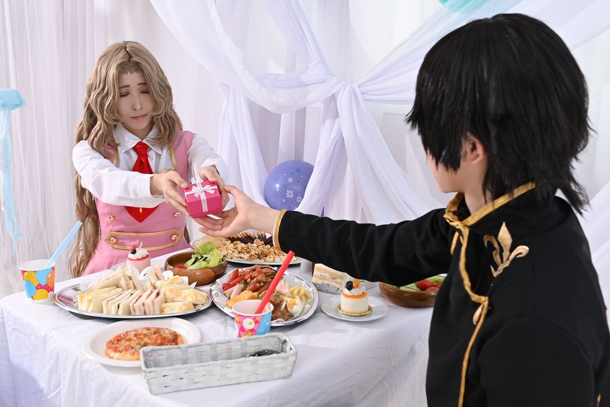 今日はプレゼントを用意したんだ 生まれて来てくれてありがとう。ルルーシュ、君に出逢えて本当に良かった。 …!ありがとうスザク 俺も、お前と出逢えて良かったよ。 #コスプレ #ルルーシュ生誕祭2021 #コードギアス