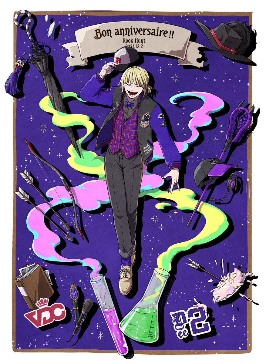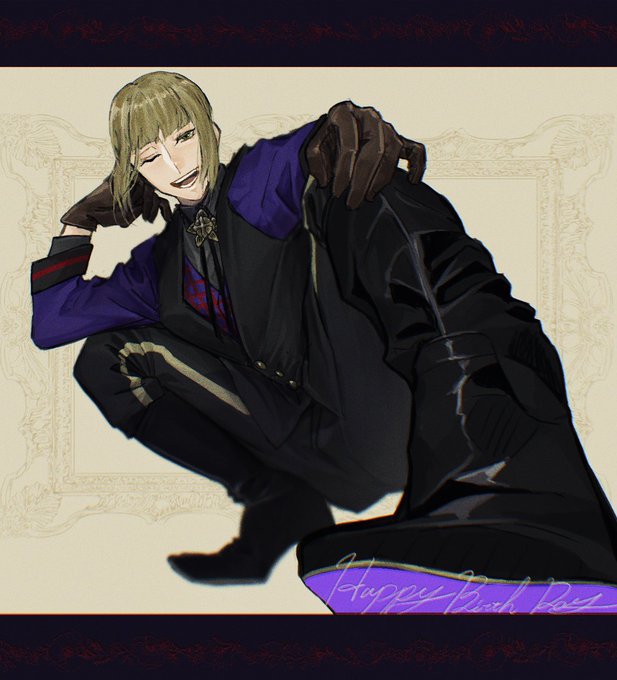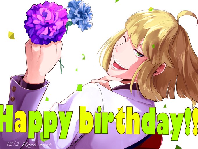 大遅刻ですが…あらためて、ルーク誕生日おめでとうございました😇🎉 誕生花はカーネーションを選びました。紫は「誇り、気品」、青は「永遠の幸福」という花言葉だそうです。 #ツイステファンアート #ルーク・ハント誕生祭2021 #ルーク・ハント生誕祭2021