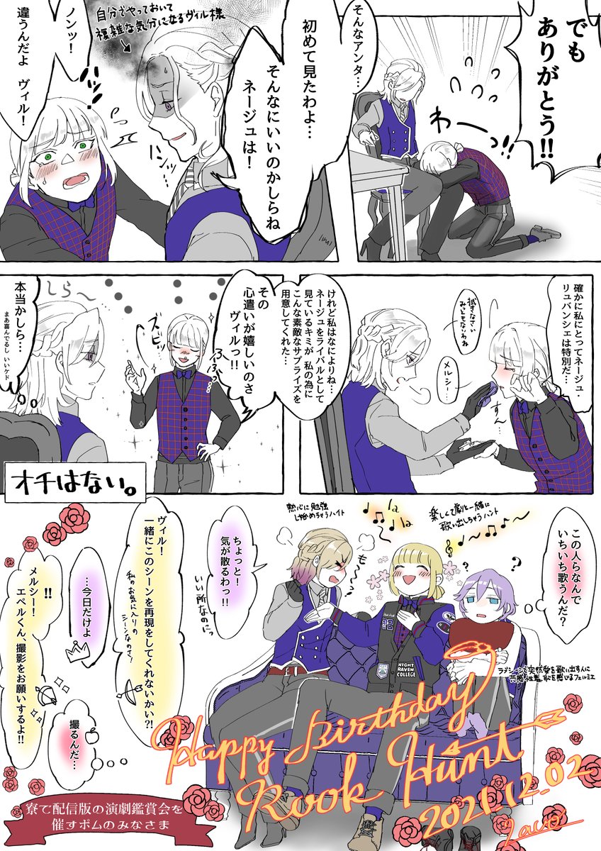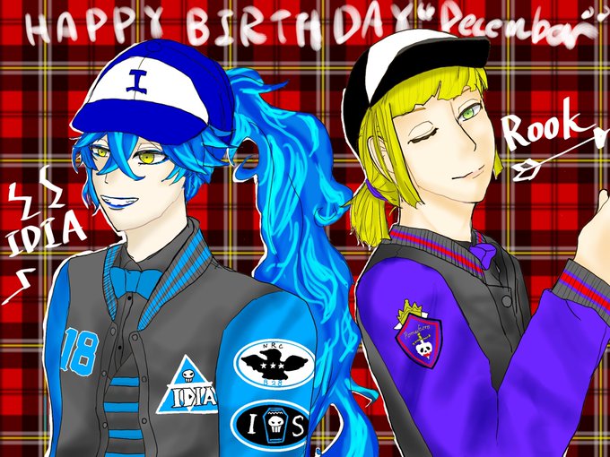 出遅れました。。。12月生まれ一緒に描いたよ! わたしにはこれが限界、、、おめでとう!! イデア氏のポニテ可愛すぎた、、、ボーテせんぱいも結んでんのよね。可愛い。。。 #イデア・シュラウド誕生祭2021 #ルーク・ハント誕生祭2021 #ツイステファンアート
