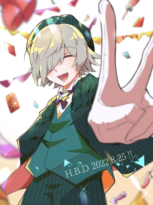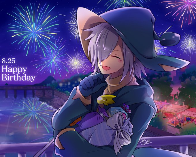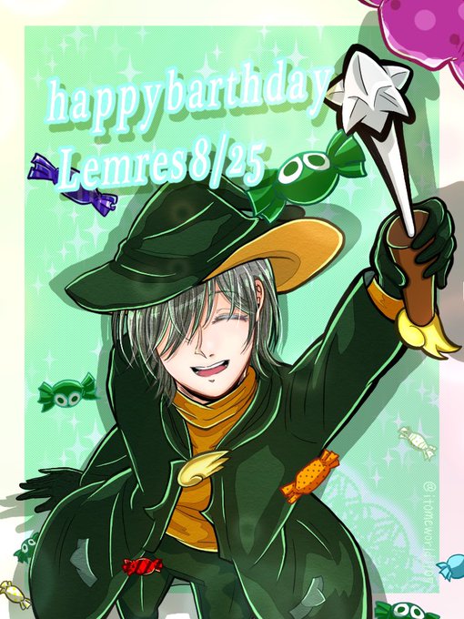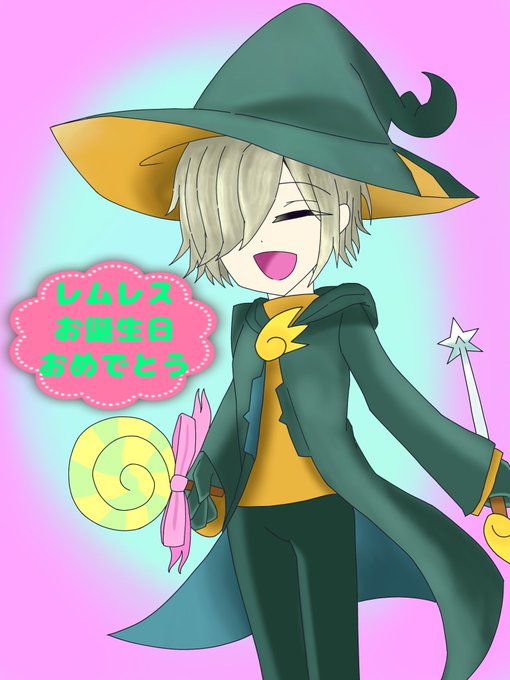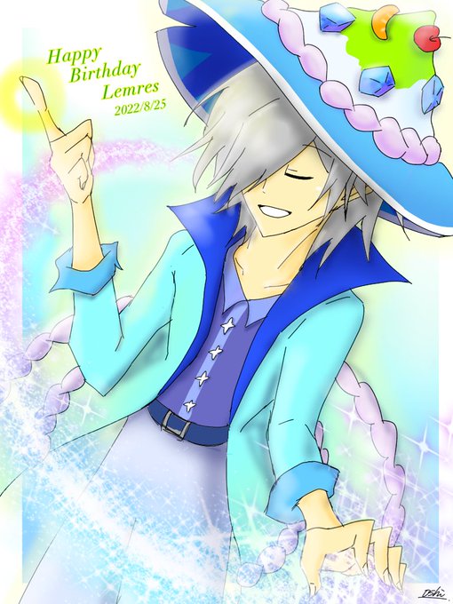 【#ぷよぷよ/レムレス】レムレス先輩お誕生日おめでとうございます!夏らしく海と夕日とすずしげなレムレスです✨ これからも優しくて頼れるちょっとあやしいお兄さんでいてください🍭🍨🎂 #レムレス生誕祭 #レムレス生誕祭2022