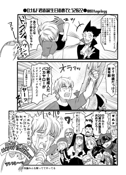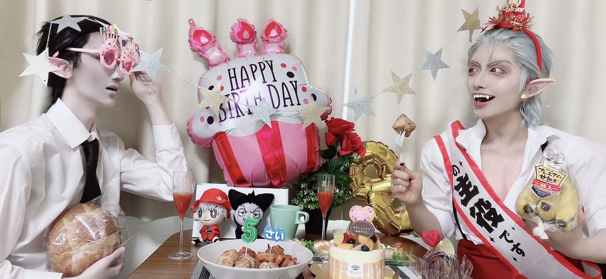 吸血鬼すぐ死ぬ/コス/⚠️捏造有 🎊🦍Happybirthday ロナルド‼️🦍🎊 Δでお祝い~‼️🎂🎉 わがまま言ってドラルク隊長と遊んだ時に誕生日祝ってもらった😉💓笑神様に好かれてるから初手でジュースこぼすしウォールステッカーも降ってくるしジョンはパン🍞 #ロナルド誕生祭2022 #ロナルド生誕祭2022