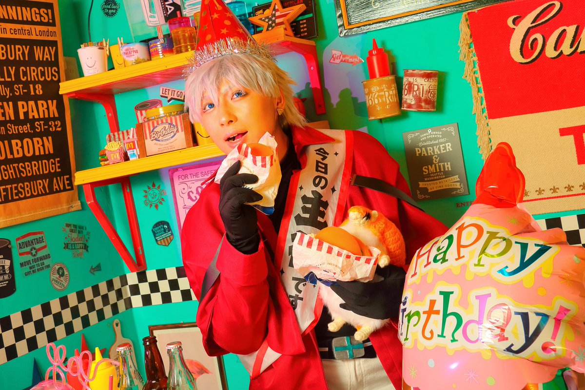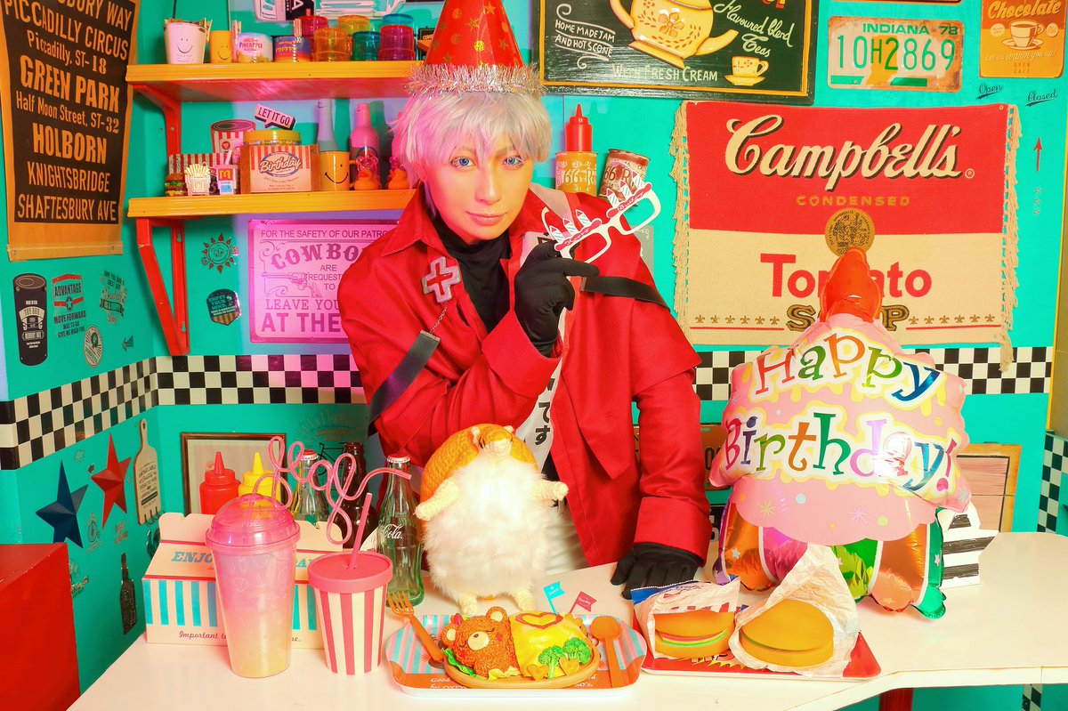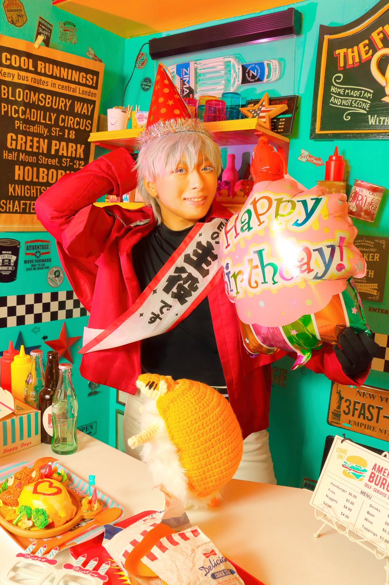 吸血鬼すぐ死ぬ/コス/⚠️捏造有 🎊🦍Happybirthday ロナルド‼️🦍🎊 Δでお祝い~‼️🎂🎉 わがまま言ってドラルク隊長と遊んだ時に誕生日祝ってもらった😉💓笑神様に好かれてるから初手でジュースこぼすしウォールステッカーも降ってくるしジョンはパン🍞 #ロナルド誕生祭2022 #ロナルド生誕祭2022