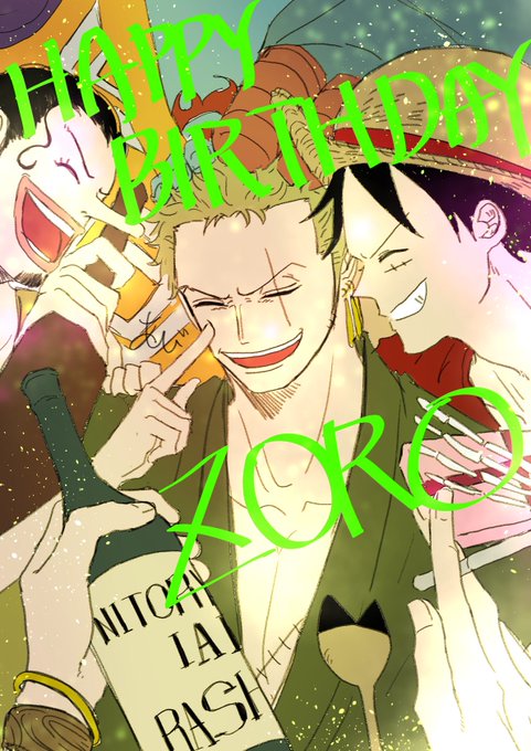 ゾロおめでとう~!!!ワノ国での活躍めちゃくちゃかっこよかったよ…世界一の大剣豪になってくれ!!🍺🍶🥂🎉 ⚠️2枚目血糊注意 #ロロノア・ゾロ誕生祭2022 #ロロノア・ゾロ生誕祭2022