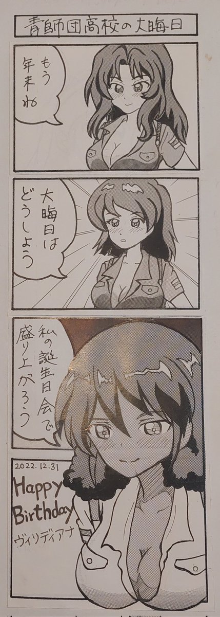 青師団高校の隊長車操縦手 ヴィリディアナちゃん、初お誕生日おめでとうございます🎉 2022年ラストのイラストです。 今年も大変お世話になりました。 2023年も宜しくお願い致します。 #ヴィリディアナ生誕祭2022 #ヴィリディアナ生誕祭 #青師団高校