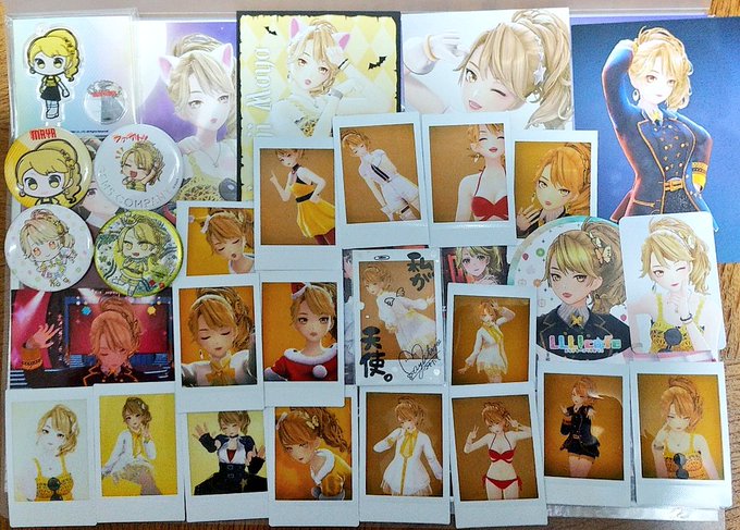 マヤたそお誕生日おめでとう! ソログッズだけ集めた! 一番左下のJGJ!!!先輩勉強のチェキから考えると思えば遠くへ来たもんだ……! ともに歩めてきているという喜びと……爆誕への感謝! #一文字マヤ生誕祭2021