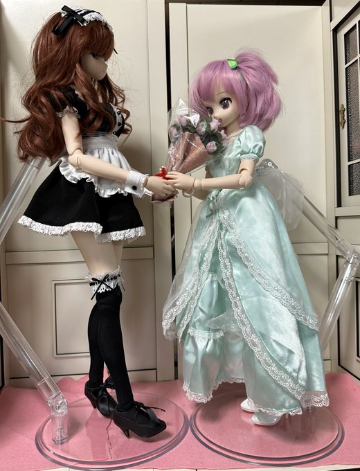 「梨璃さんお誕生日おめでとうございます🩶」 「ありがとう楓さん🩷」 「わたくしは今日は一日、梨璃さんだけの専属メイドですわ。 梨璃さんのご命令でしたら、どのような恥ずかしい命令でも従いますので、遠慮なくお申し付けくださいませ😉🫶」 #一柳梨璃生誕祭2023 #アサルトリリィドール部