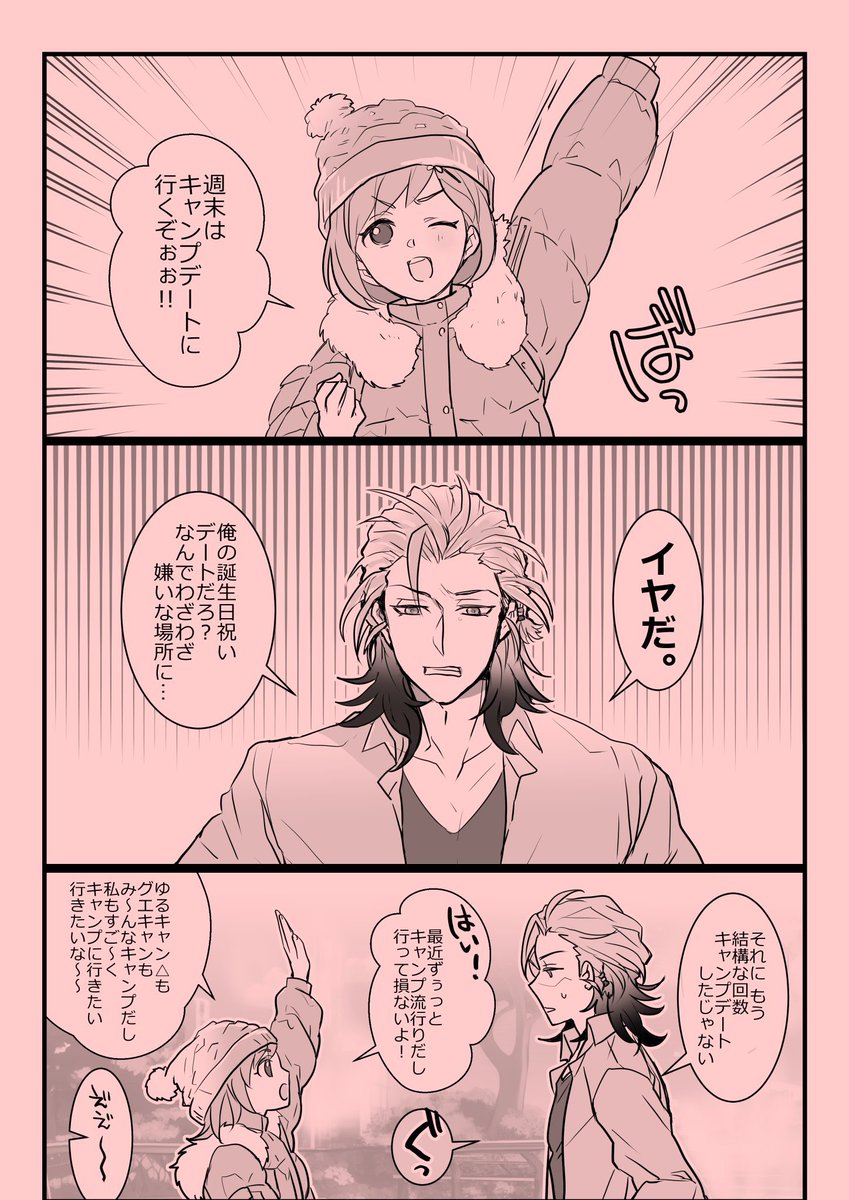 #七ツ森実生誕祭2023 ななキャン△(1/2) グエルくんも阿座上さんもキャンプしてるので!今年はキャンプで! キャンプ場のときめき会話の後日談です。 ※ツリーの最後にキャンプ場ときめき会話入れておきます。 ここのときめき会話も最高だよ… 実くん誕生日おめでとう✨🎉