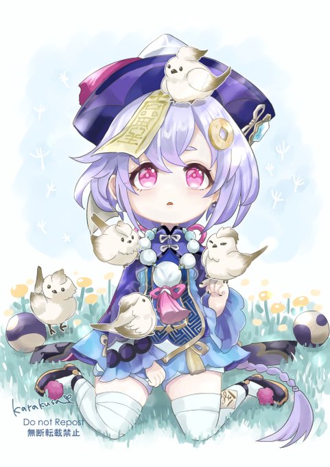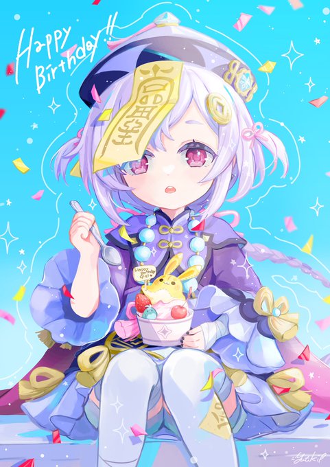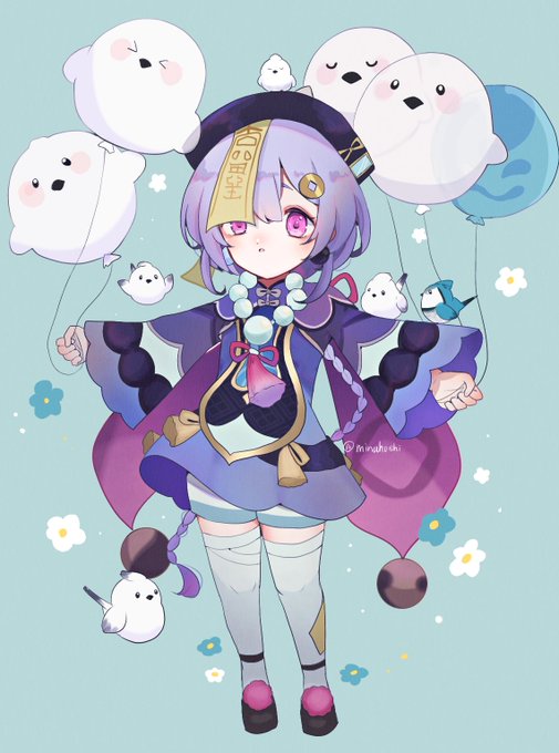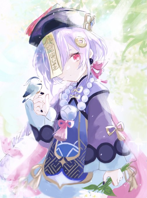 #七七生誕祭2023 #qiqi #genshinimpact 七七ちゃんお誕生日おめでとう!初期から加入してくれてたのでヒーラーとっても助かってる💐大好きなヤマガラといっぱい遊べるといいね🐥