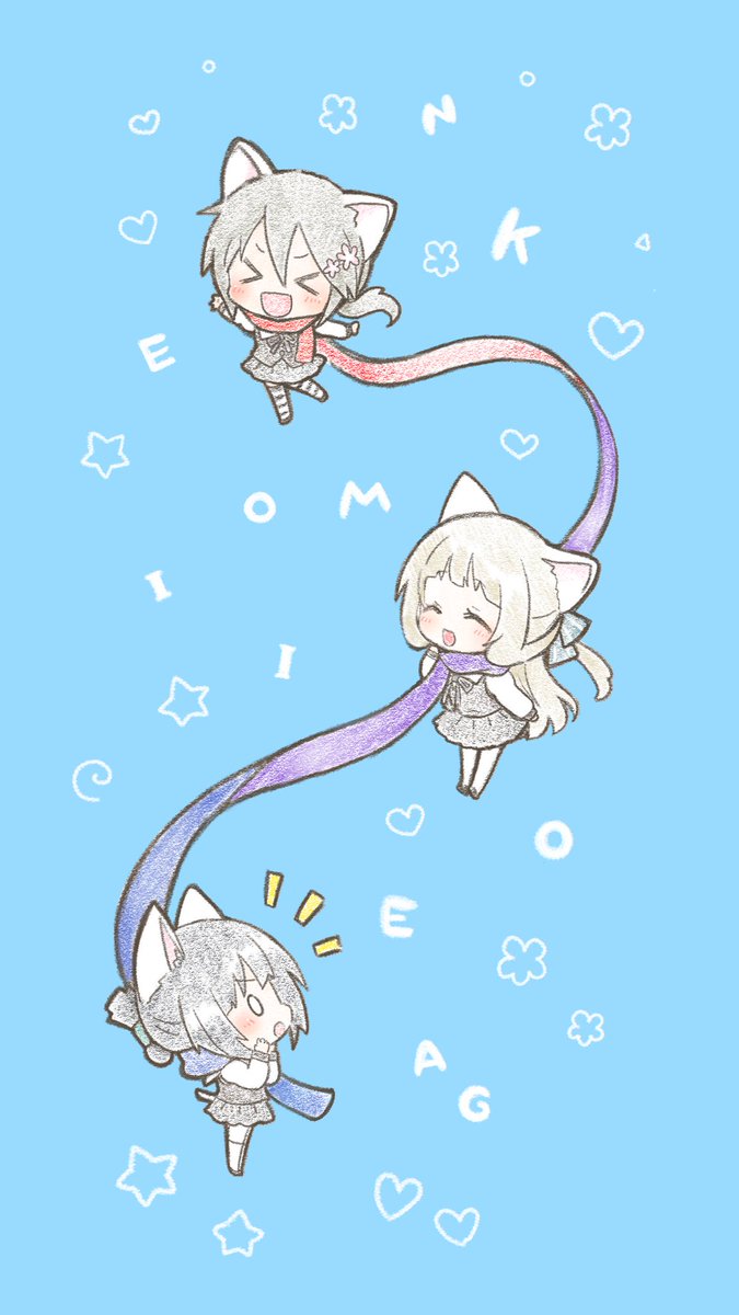 銀ちゃん、お誕生日おめでとう🎉🎉🎉 3人はズッ友🐱🐱🐱 ズッ友の証であるおかかちゃんに扮した3人を描きました マフラーのグラデーションが彼女らの関係性を示しているようで素敵だなと思ったのでした🎀 #yuyuyu #三ノ輪銀生誕祭 #三ノ輪銀生誕祭2021