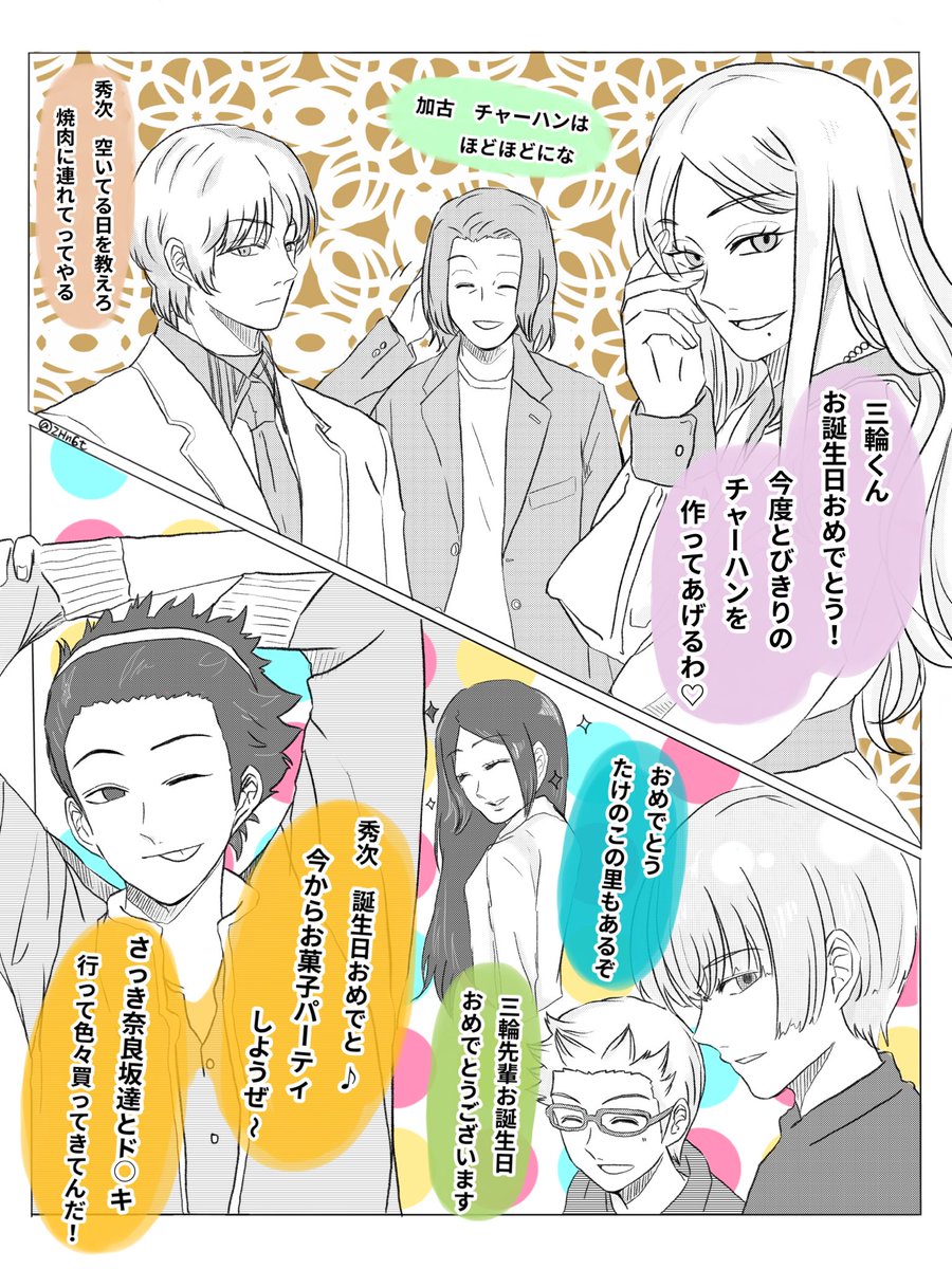 三輪くんハピバ✨🎉✨ よねやん達だけでなく旧東隊メンバーにも祝ってもらってるはず!! そして加古チャーハンをさりげに阻止する二宮さんw #三輪秀次生誕祭2022 #三輪秀次誕生祭2022 #ワートリ