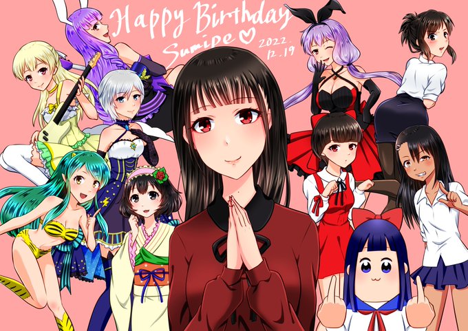 大遅刻かましましたが #上坂すみれ さんお誕生日おめでとうイラストです! 今まで通って来た作品のCVすみぺキャラを描きました! 31歳もすこやかで楽しい1年になりますように✨ #上坂すみれ生誕祭2022 #上坂すみれ誕生祭2022 #すみぺ美術部