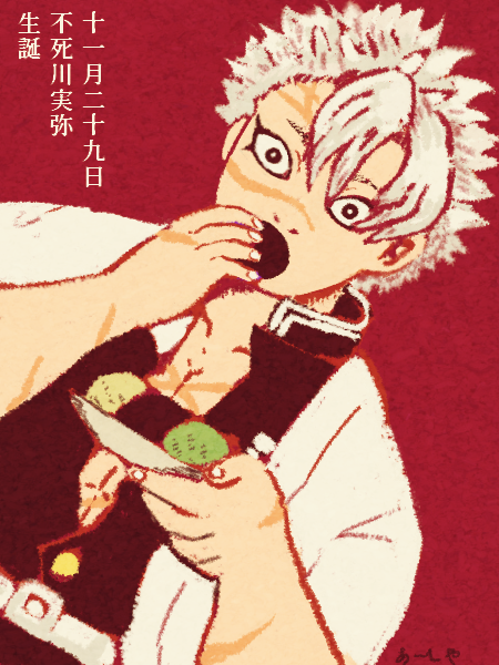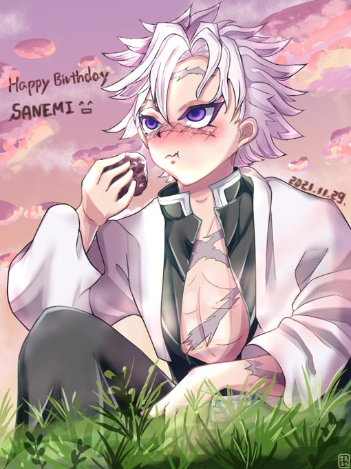 #不死川実弥生誕祭2022 #不死川実弥誕生祭2022 好物を無心になってほおばっていたので 皆の視線に全然気がつかなかった🍃 (今気づいためっちゃ見られてた) お誕生日おめでとうございます