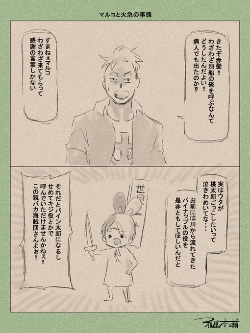 在りし日の赤髪海賊団その45です 過去分は以下より閲覧いただけます twitter.com/i/events/15683… #FILMRED文化祭 #アート部門 #ONEPIECE #FILMRED #ワンピース #シャンクス #ウタ #在りし日の赤髪団 #マルコ誕生祭2022 #不死鳥マルコ誕生祭2022