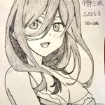 中野家の五つ子ちゃん誕生日❗ 三人目は三玖ちゃん(*´ー`*) インドア派の不器用な三女(*^^*) 右側が隠れる前髪で表情を隠しているが、怒った時に見せる膨れっ面が可愛い♥️ #中野三玖生誕祭2022 #中野三玖誕生祭2022 #中野三玖生誕祭 #中野三玖誕生祭 #中野三玖 #五等分の花嫁 #毎日お絵かき