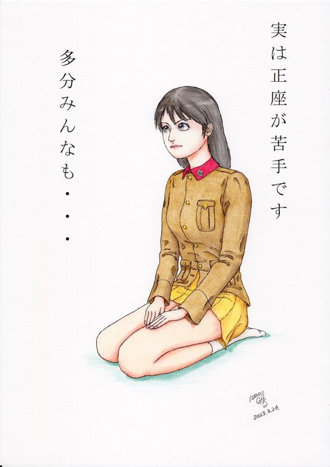 ㊗️久保田りん様、お誕生日おめでとうございます🎊🎉🎈🎂 初めて久保田を描きました。 なんとか、今日中にできましたマル 知波単学園には、正座するのが初めての娘もいるのでわ。 玉田は、正座しないよね🤔 #久保田りん生誕祭2023 #久保田りん生誕祭