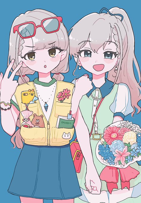 徳島県出身、写真とポエムが大好きな久川凪ちゃん‼︎ ファッション・流行りの店巡りが趣味の久川颯ちゃん‼︎ 🎉ハッピーバースデー🎉 楽しい誕生日でも変わらず仲良くいつも一緒…!! #モバマス版深夜の真剣お絵かき60分1本勝負 #久川姉妹誕生祭2022 #久川颯生誕祭2022 #久川凪生誕祭2022