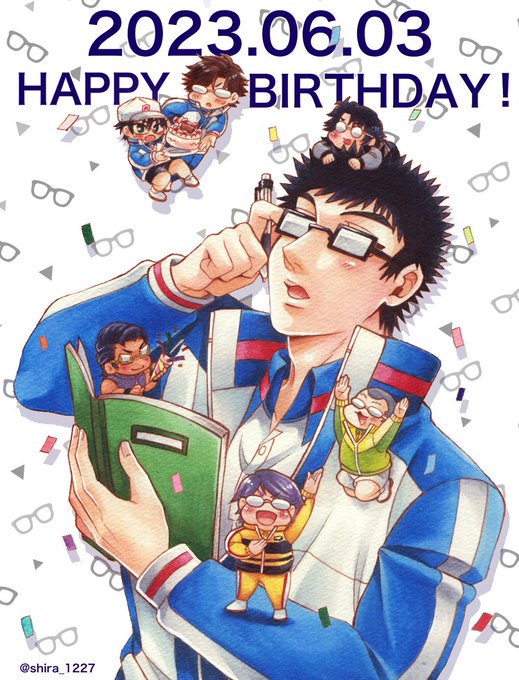 👓🌸「皆~!今日はトゲトゲ頭のデータマン、乾貞治クンが生まれた日よ~💕」 👓🎩「さぁ~我々もお祝いに歌いますよ~!🎤🎶」 💃\眼鏡祭り!眼鏡祭り!/💃 👓❄️「Σ いやそこはメガネ☆セブンの曲ちゃうんかい!」 🎊 Happy Birthday 乾 🎂💘🎉 #乾貞治誕生祭2023 #乾貞治生誕祭2023 #shirateni