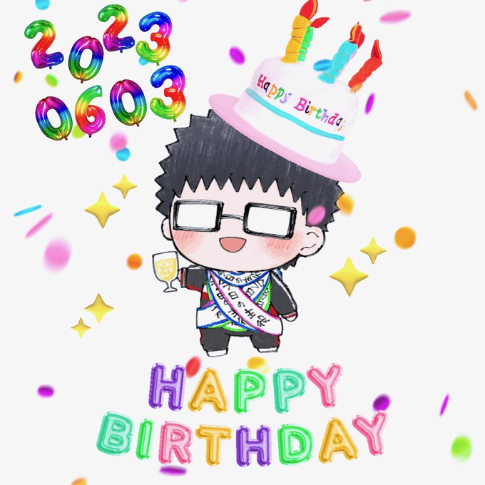 乾~っ!!お誕生日おめでとう~~~っ!!!😭👓🎂👏💓🎉 エイプリルフールに予告が出るから嘘かと思ったけど、バースデーセット本当に具現化されてよかったね~~~!!愛してるよ!!!🍑💘 #乾貞治誕生祭 #乾貞治誕生祭2023 #乾貞治生誕祭 #乾貞治生誕祭2023 ⚠️#自作 #shirateni twitter.com/shira_1227/sta…