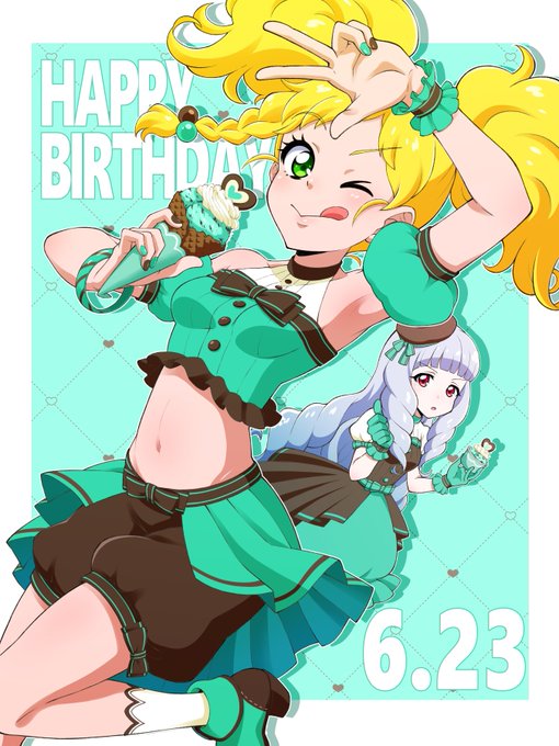 ゆず先輩お誕生日おめでとうだゾ! 今の時期が旬?なチョコミントっぽいゆずっとリリィ☆でお祝いです🧡🩵 リリィ先輩もGoodと言ってます👍 #aikatsu #アイカツスターズ #二階堂ゆず生誕祭2023