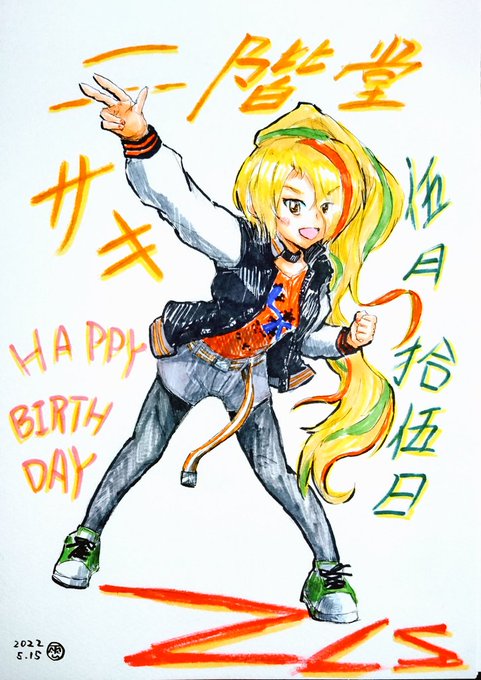 本日5/15は元レディース特攻隊長にしてフランシュシュリーダー、ゾンビィ2号ことサキちゃんの誕生日です。 今年は「風の強い日は嫌いか?」ライブ衣装描きました。 サキちゃん誕生日おめでとう!てっぺん取るまで走り抜け! #ゾンビランドサガ #二階堂サキ生誕祭2022 #二階堂サキ誕生祭2022