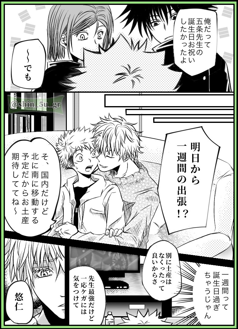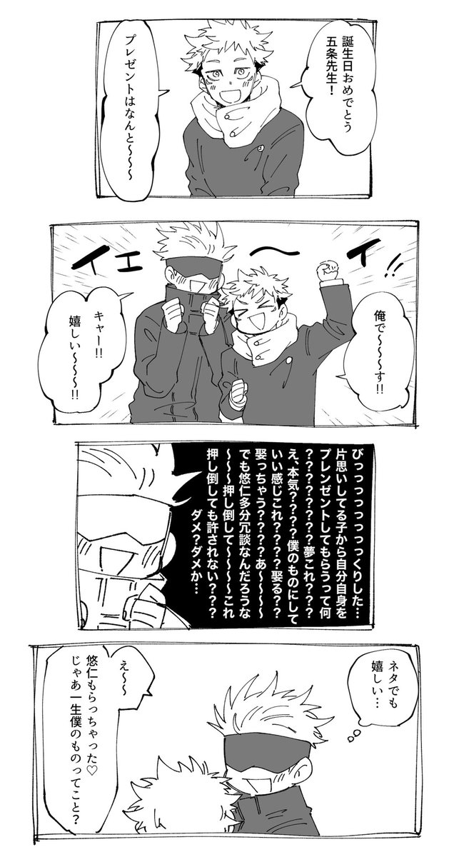 5じょー先生、お誕生日おめでとう🎉🎂はやく箱から出てきて、ゆじといちゃいちゃラブラブしながらケーキ食べてください!お祝い漫画は二十四節気と五悠です😆そして、素敵なタグありがとうございました! #五悠版ゴジョーサトル誕生祭2021
