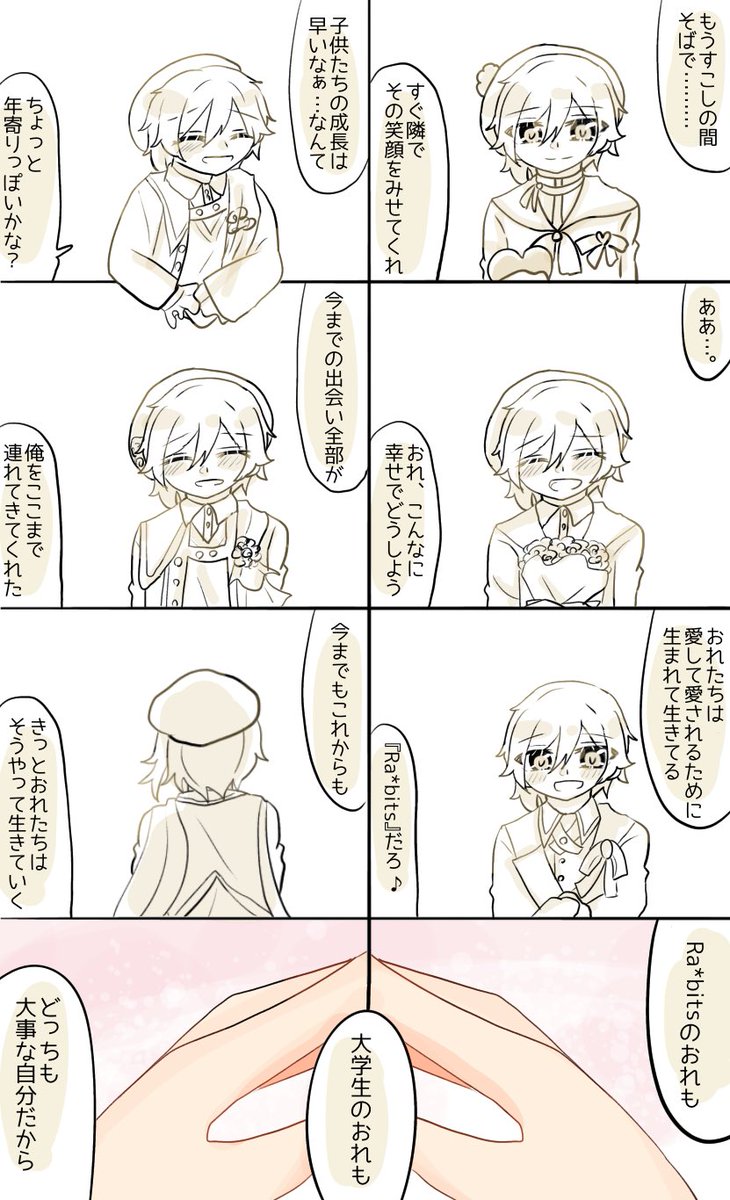 Ra*bitsの誕生日絵、天満光の誕生日に揃得ることが無事出来ました🥳 皆の誕生日お祝いできて嬉しい〜! 来年は何しようかな…🎶 #真白友也誕生祭2022 🤍 #仁兎なずな誕生祭2022 💛 #紫之創誕生祭2022 💜 #天満光誕生祭2022 🧡