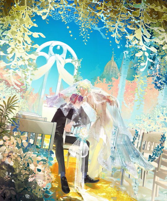 どひふ 👔🥂 Happy Birth Day, our beloved June Bride 👰🥂✨ Hope my Hifumi-chan have the most beautiful love story with his husband👔🥂 Illustration by @Moconmokeke #伊弉冉一二三生誕祭2022 #伊弉冉一二三誕生祭2022 #hmartth #dohifu #โดะฮิฟุ