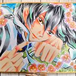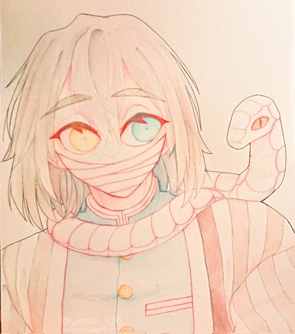 遅刻してしまいましたがお誕生日おめでとう! 逆境から這い上がって柱にまでなったあなたのことが大好きです🥲🙏✨ 使用画材:透明水彩、不透明水彩(ホワイト)、色鉛筆、アルシュ粗目 #伊黒小芭内誕生祭2022 #伊黒小芭内生誕祭2022