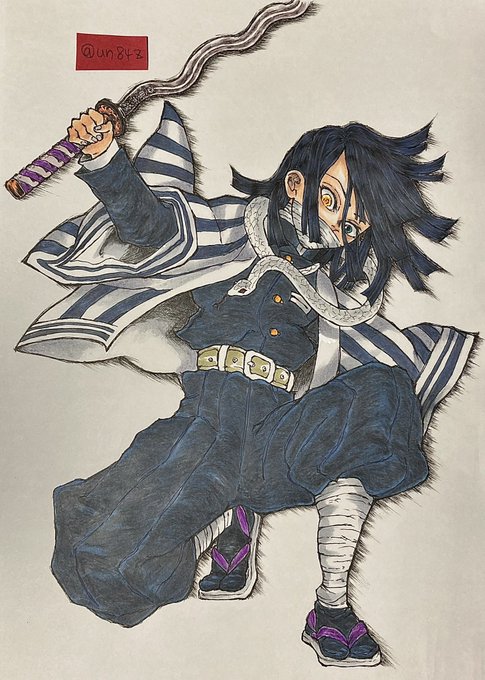 遅刻してしまいましたがお誕生日おめでとう! 逆境から這い上がって柱にまでなったあなたのことが大好きです🥲🙏✨ 使用画材:透明水彩、不透明水彩(ホワイト)、色鉛筆、アルシュ粗目 #伊黒小芭内誕生祭2022 #伊黒小芭内生誕祭2022